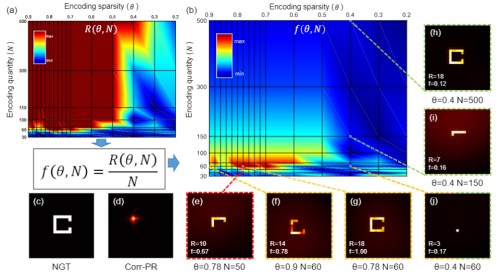 针对上述关键难题,研究人员构造最佳重建收益函数,通过优化获得最佳编码稀疏度,最大化目标信息传递效率,实现在大视场、高质量重建的前提下将数据需求降低 8.3 倍,并验证了优化参数对于不同目标及散射介质不同区域的泛化性。研究人员进一步改进基于非负矩阵分解的重建算法框架,充分开发传统方法中未能利用的强度波动矩阵,结合统计分析的方法获取目标物体的灰度信息。在全局重建中,抛却了传统方法子区域图像叠加的过程,转而依赖逐点之间的相对矢量位置关系来构造整个图像,因此重建图像背景清晰无伪影。该方法成功透过200μm鼠脑组织层实现对138μm视场(约4.3倍记忆效应范围)的16级灰度成像,突破了强散射介质成像中 “视场—数据量—成像质量” 难以协同优化的核心瓶颈,为生物组织深层光学成像、脑科学显微观测、极端环境散射成像等领域提供了全新技术路径。