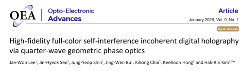研究成果于 2026 年 1 月 25 日以题为“High-fidelity full-color self-interference incoherent digital holography via quarter-wave geometric phase optics”发表在《Opto-Electronic Advances》上。