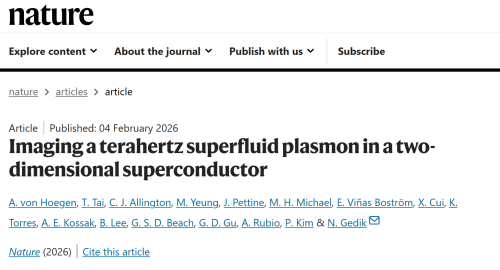 近日,麻省理工学院A. von Hoegen,N. Gedik团队在Nature上发文,在少层铋锶钙铜氧Bi?Sr?CaCu?O???中,通过光谱实验证实了能隙以下二维超流等离子体激元的存在,并在空间尺度上,解析了深亚衍射极限的太赫兹电动力学行为。