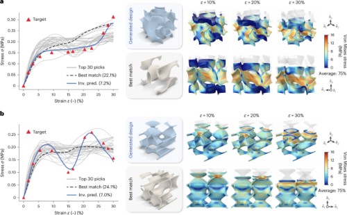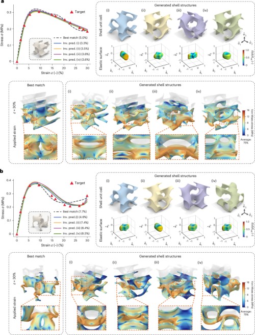 图3:具有目标压缩应力-应变响应的壳体超材料的逆向设计